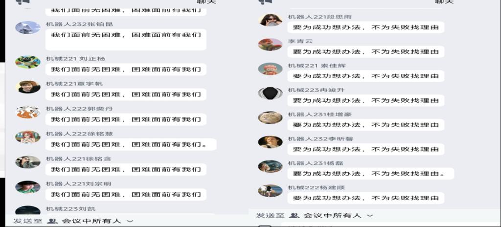 会议开始前,王虹老师事先与各位生涯老师及干部沟通并传达“亮剑”精神及口号,由生涯老师及干部带领学生进行自学。会议上,王虹老师首先在线上进行随机抽考形式提问“亮剑”精神口号是什么?每位被抽取到的学生都能准确而迅速做出回答。随后,在王老师带领下生一起喊出口号“我们面前无困难,困难面前有我们。要为成功想办法,不为失败找理由”。的口号,激励学生坚定信念。