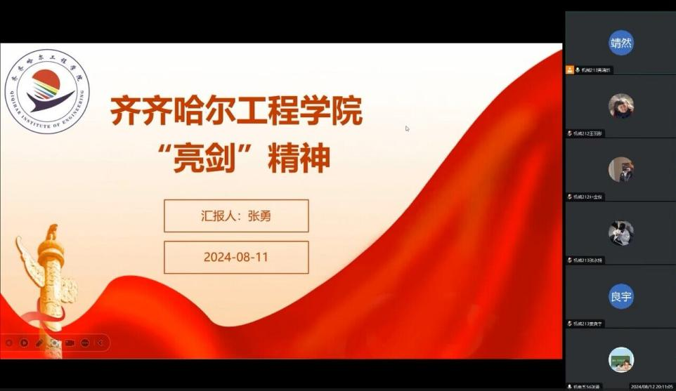 为了实现教学教育的发展,我们开展落实了“亮剑”育人特色,由张勇老师和黄靖然同学一起在8月11日,率领21级全体学生开展线上班会。
