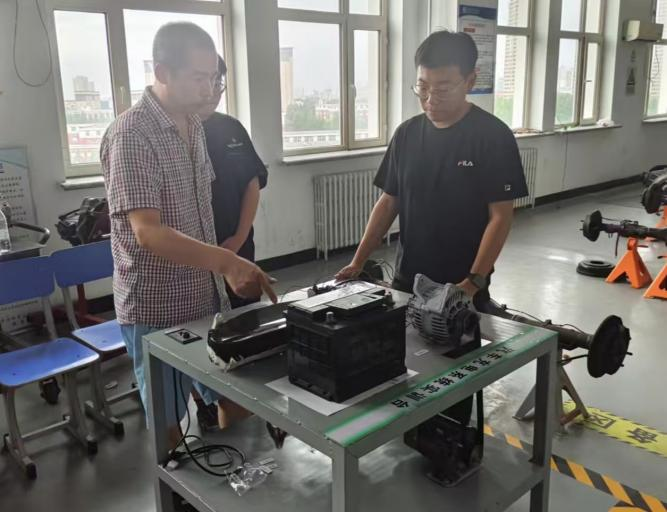 8月6日,汽车服务工程指导教师马福亮前往汽车教学中心719,为专业实践学期汽车充电系统实训台的制作提供了指导。