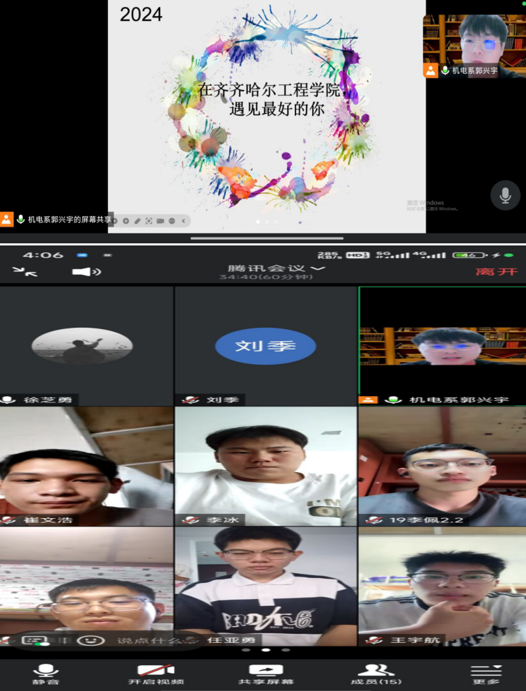 2024年9月2日 生涯导师郭兴宇利用腾讯会议进行新生见面会,所带新能源汽车工程专业、汽车服务工程专业学生参加.
