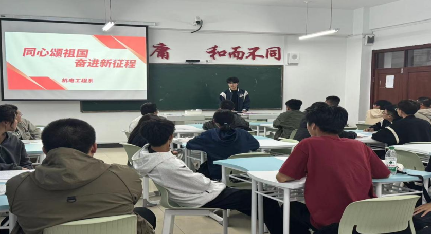 9月26日,机电工程系团总支于图书馆113室,以“同心颂中国,奋进新征程”为主题,举办了一场意义非凡的演讲比赛。此次活动,旨在庆祝中华人民共和国成立75周年,同时激发同学们的爱国热情,坚定他们为实现中华民族伟大复兴的中国梦而努力的决心。