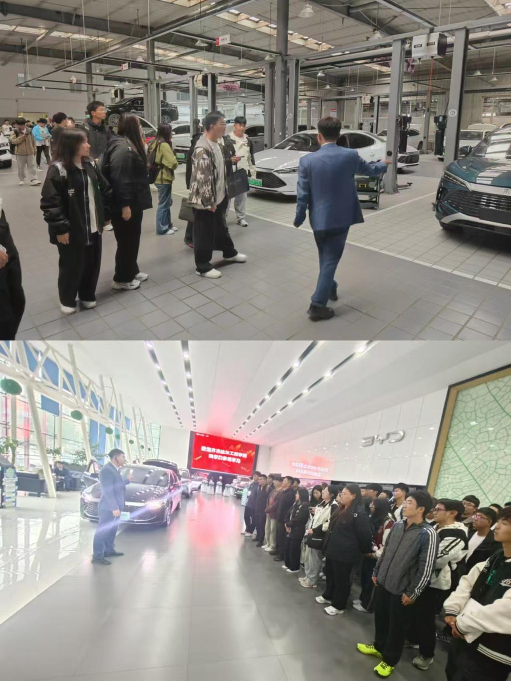 2024年9月23日,星期一,新能源汽车专业的同学们开启了一场别开生面的参观之旅——前往比亚迪4S店。