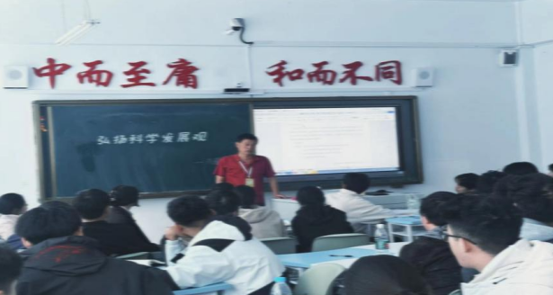 为深入贯彻学习习近平总书记关于科学普及工作的重要论述,大力弘扬科学家精神,引领青年学生从科学家精神中汲取成长养分,汽服231班于2024年9月19日上午组织开展了弘扬科学发展观班会,本次班会由辅导员董晓亮老师主持。