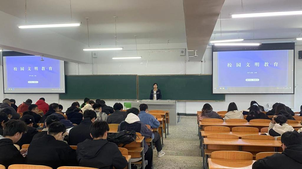 为进一步提升学生的文明素养,培养良好的行为习惯。10月8日,电气专业辅导员陈迎春组织电气22级、23级全体学生在图书馆101召开校园文明教育会。