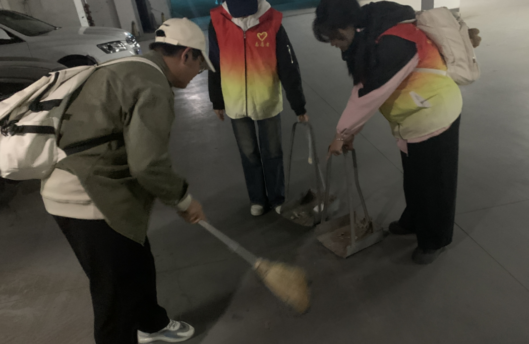 天朗气清,金秋如期而,为充分发挥劳动实践与志愿服务的育人功能,引导齐工程青年弘扬崇尚劳动、热爱劳动、辛勤劳动、诚实劳动的劳动精神,在志愿服务与劳动实践中锤炼意志品格、传承奉献精神、彰显青春风采、体会青年担当,,2024年10月14日,下午一点十五分,机电工程系车辆241的志愿者已经在图书馆前准备就绪,志愿者们穿戴整齐,在金域名都小区进行了志愿者活动。
