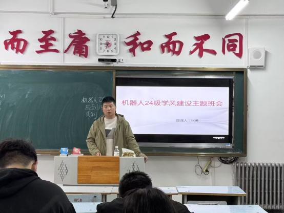 为提高同学们的学习方法、学习积极性,让同学们清晰对未来的展望,辅导员张勇先后于10月14日和10月21日在图书馆111给机器人24级的同学召开了学风建设主题班会。