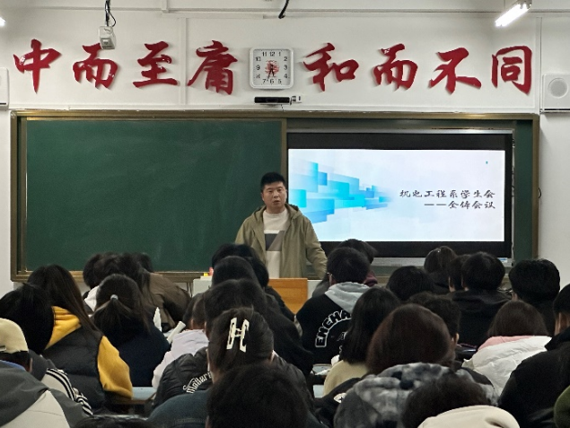 2024年10月22日晚17:10在图书馆110举行了2024-2025学年上半学期机电工程系学生会第一次例会,学生会主席李孟孟主持此次会议,参加此次会议的有机电工程系指导老师张勇、机电工程系学生会干部以及机电工程系学生会全体新生。