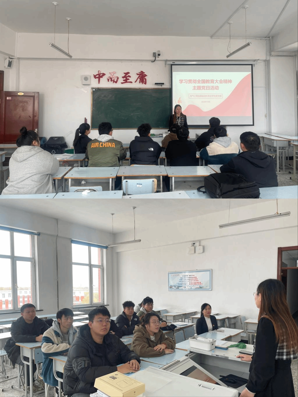 10月25日在图书馆541电气专业学生党支部书记汝晓艳带领全体党员学习开展学习全国教育大会精神主题党日活动。通过学习,全体党员深刻认识到教育强国建设的重要性,纷纷表示将以实际行动为学校高质量发展做出新的更大的贡献。同时,电气专业党支部也在积极谋划如何将学习成果转化为推动学校教育事业高质量发展的强大动力,确保重要讲话精神和大会精神落实落细。