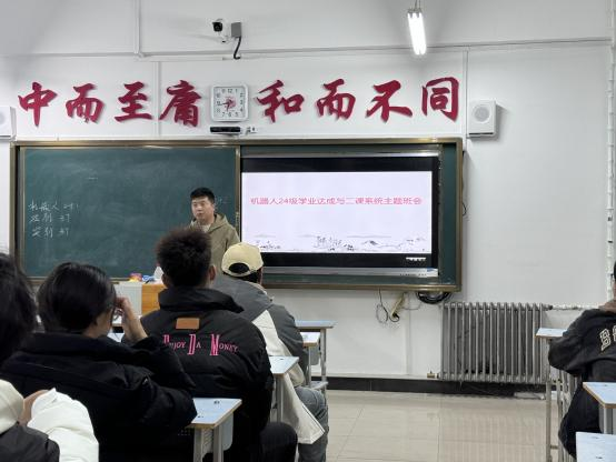 为了使同学们了解如何获取毕业证及学位证,辅导员张勇于10月28日在图书馆111给机器人24级的同学召开了学业达成与二课系统主题班会。