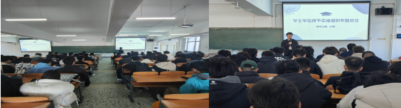 专业长王立鹏结合自身教学与工作经验,就学士学位授予条件、授予程序、补充规定、绩点要求等方面进行讲解,细致深入的讲解加深了学生对学校学士学位授予条件及实施细则的认识,同时为规划好学习进度、发展方向、职业选择奠定了坚实基础。