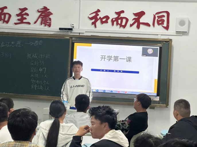 开学第一天,身为寝室学长我给机械243班全体同学上了开学第一课。主要讲解了学校的规章制度。新生的“开学第一课”重点介绍了学生寝室管理要求、违纪处分及其种类与考试违纪及作弊、处分程序等内容。此外,还设有问答环节,让新生就学分管理、奖学金评定、请假制度等问题,让同学们铭记于心。除此之外,开学第一课的内容更加注重于理想、学习与意志品质的培养。例如,强调了树立远大理想、坚持勤学苦练、磨练意志品质等方面,旨在激励学生面对挑战。