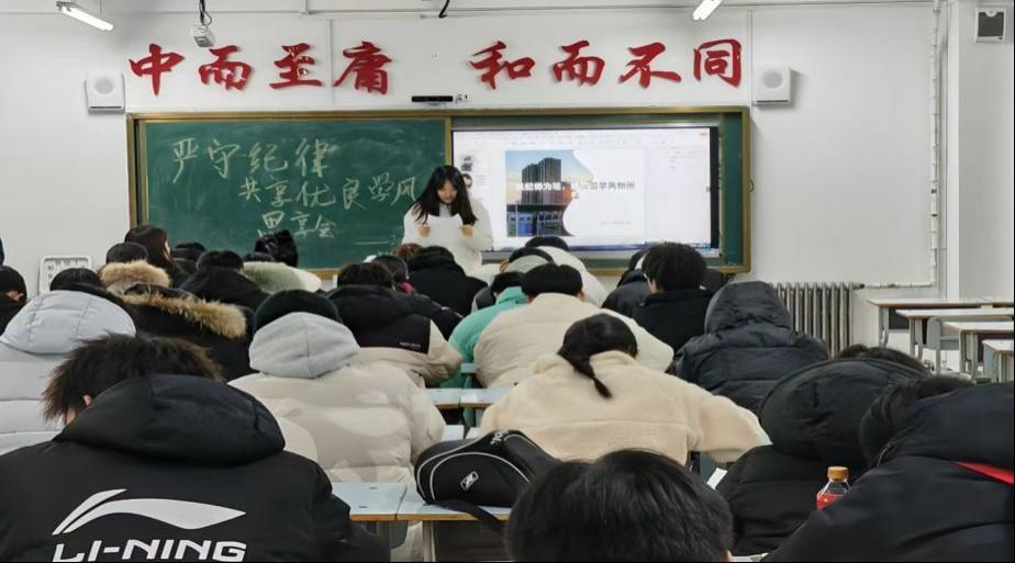 为着力引导学生遵规守纪,营造良好学风、校风,树立自觉学习的责任感和使命感,培养良好学习习惯。机电系权益部于2024年12月3日在图书馆111举行“严守纪律,共筑优良学风”思享会。本次活动共56人参加,由权益部车辆231孙钰涵主持。