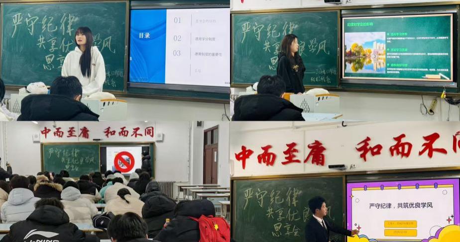 车辆243班王秋月同学结合自身经历,讲述了在日常学习中如何通过严格自律、合理规划时间,从而取得学业上的进步。另一位分享的同学电气242潘陈依提到:“严守学习纪律,不仅是对学校规章制度的尊重,更是对自己未来的负责。当我们每天按时完成作业、积极参与课堂互动,看似简单的行为,长期坚持就能形成良好的学习习惯,进而推动整个学风的优化。本次活动,旨在锻炼学生严守纪律能够激发学生的自我认知意识和自我管理能力。学生能够认识到外部环境与自身内在因素对学习的影响,并学会合理规划学习任务、保持专注和善用学习时间,丰富校园文化生活,促进学生全面发展。