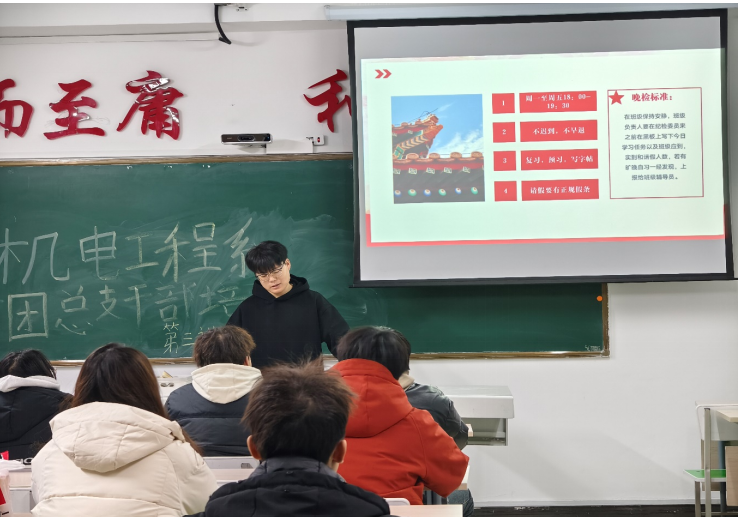 12月18日18点整,为了进一步加强学风建设,提升晚自习纪律和效率,同时确保食堂服务质量和食品安全,机电工程系团总支组织了一场关于晚自习检查规范与食堂站岗要求的专题培训。此次培训旨在明确各项规定,提升纪检委员的责任意识和执行力,为营造良好的学习和生活环境提供有力保障。