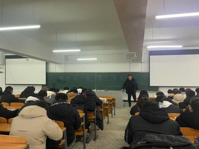 为了加强同学们的假期安全意识,保障学生的自身安全和财产安全,12月23日辅导员苏海龙老师在图书馆101会议室为车辆21,24级全体开展有关于假期安全教育的主题班会。