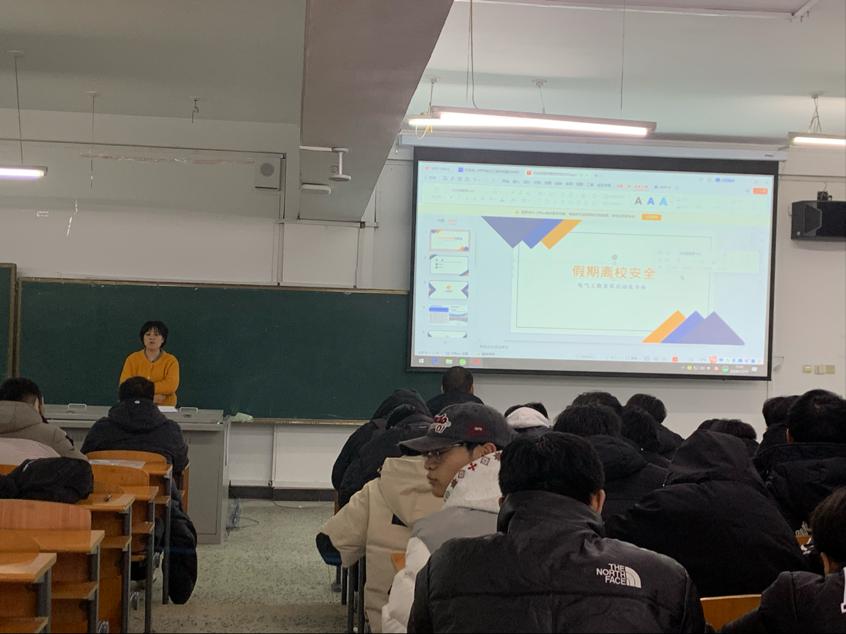 12月25日,电气24级辅导员于月婷老师为了增强学生们假期的安全意识,在图书馆101开展了假期安全教育会议,电气24级全体学生参与。