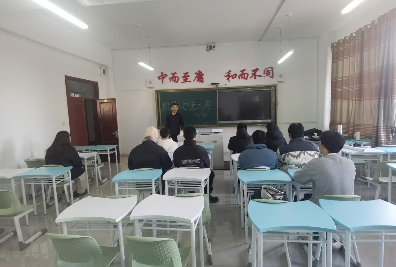 10月12日杨茂楠老师在图书馆427为机器人创意大赛开展了一次动员会。此次会议汇聚了来自全校各参赛队伍的师生代表,现场气氛热烈,思维碰撞的火花四溢。会议伊始,杨老师强调本次大赛“以创意驱动科技,用实践铸就未来”的宗旨,点明机器人领域创新对社会发展、产业升级的深远意义,鼓励选手们突破常规,展现非凡巧思。“这不仅是一场技术的较量,更是创意灵感的狂欢,希望大家敢想敢为,在赛场上绽放光芒!”