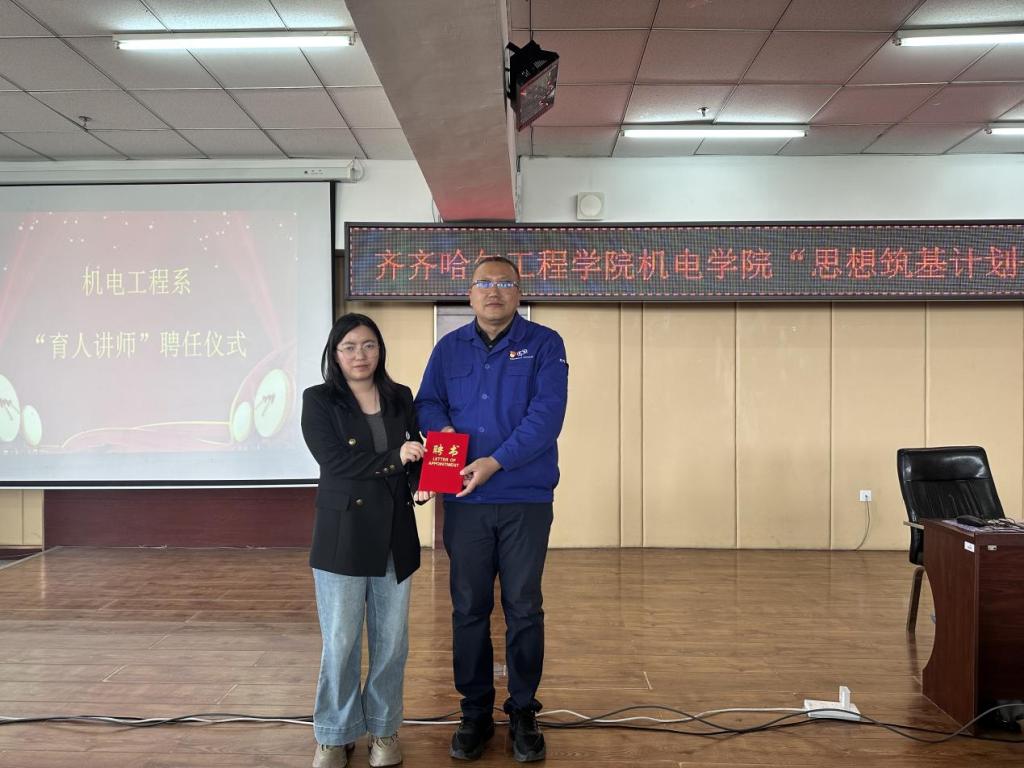 活动伊始,参加活动的同学们对孟祥志教授的到来表示热烈欢迎。刘微为孟祥志教授颁发育人导师聘书。主持人王秋月为大家介绍了孟祥志在行业内取得的卓越成就,强调了弘扬劳模精神与工匠精神对于培养高素质人才的重要意义。