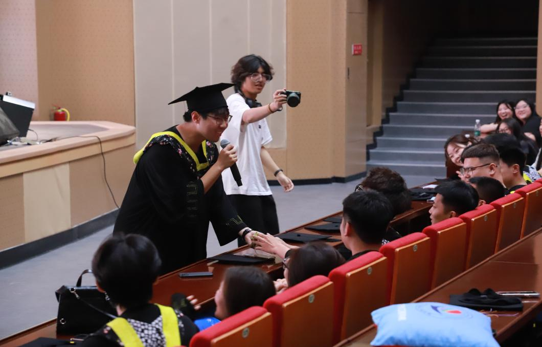 晚会特别设置了令人期待的抽奖环节,二十位幸运的毕业生从众多参与者中脱颖而出。活动圆满结束后,他们满心欢喜地收到了学院精心筹备的获奖礼包。此刻,他们的脸上洋溢着灿烂的笑容,那笑容如同春日暖阳般温暖而明亮。这份意外降临的幸运,宛如一抹绚丽的色彩,为他们的毕业季增添了别样的精彩与回忆。