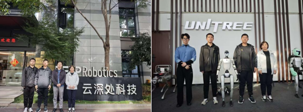 随后,团队赴杭州云深处科技股份有限公司、宇数科技股份有限公司和佛山华数机器人有限公司开展观摩工业巡检、特种作业等足式机器人产品演示,聚焦实践教学改革与实习基地建设展开探讨。双方就企业人才需求、岗位匹配度及校企合作模式进行了深入交流。企业负责人承诺提供定制化实习岗位与培训课程,优先吸纳优秀毕业生,实现人才培养与企业需求无缝衔接。