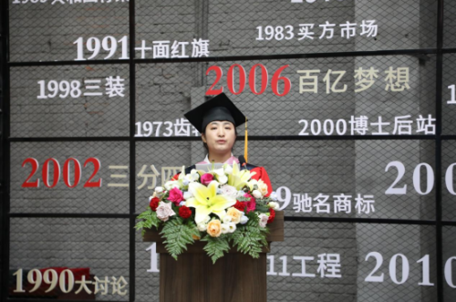 家长代表、潘俊豪的母亲在仪式上发言。她首先向学校和中国一拖表示最诚挚的感谢,感谢学校为学生创造了优越的学习环境,企业为学生提供了宝贵的就业机会。她说:“学校不仅传授了知识,更教会了孩子们如何走出校园,服务社会。是学校的教师和企业指导教师的辛勤付出,孩子们才能在成长的道路上茁壮成长,他们定会珍惜这来之不易的机会,努力工作,不断提升自己,以实际行动回报学校和企业的厚爱。”