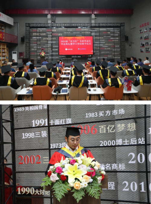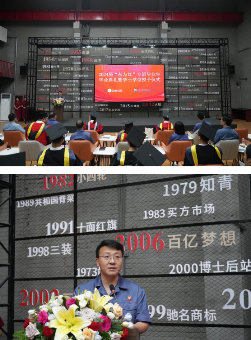 毕业典礼由敖林喆主持。敖林喆首先说明了“装备制造产业学院——东方红专班”成立的目的和意义,介绍了校企合作的成果以及“东方红”专班学生的成长历程和取得的成就。他表示,本次毕业典礼既是东方红首期专班的毕业典礼,也是学校首次在合作企业举办的毕业典礼,更是双方在探索校企合作、产教融合之路上的重要里程碑,意义非凡。