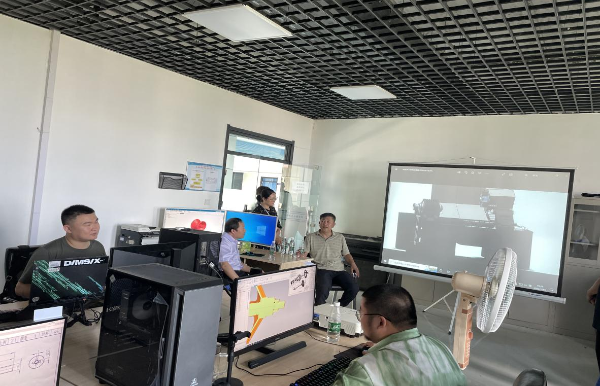 曹院长代表学校对姜总的到来表示热烈的欢迎,并带领其考察了机电工程系实验室的基础设施,提出了加快推荐机床产业学院工作的期望。工作室成员王志博向领导们汇报了近期工作室在产业学院项目中的工作进度,并汇报来了在项目推进中的工作方向。姜总对工作室的目前工作进度给予了肯定与赞扬,对工作室技术员技术难题进行了一一解答。专业负责人敖林喆提出了要以产业学院为依托,在专业课程建设上继续加强合作,争取开发出优质的应用型课程,打造出培养人才的一条坚实道路。