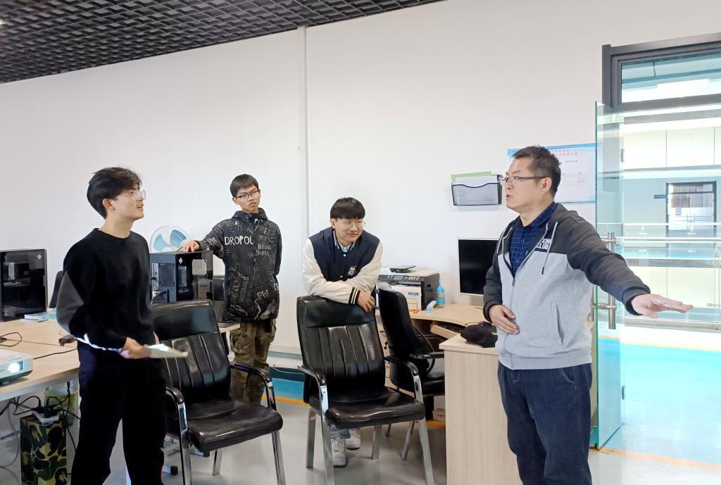 姜副院长对学生所汇报的该阶段的工作中存在的问题给予了指导与建议,并对设备机械手的抓取动作提出了优化方案,指出工作室之前研究中存在的不足,围绕机床设备的选材、主轴转速、设备工作精度等方面提出指导意见。他强调,工作室成员要加大市场调研,参考国内外同类机床,对标国际一流装备精度,进行有效且合理的参数对比,在比较中找出该产品相对其他同类机床的优势与区别,完善设计的细节。