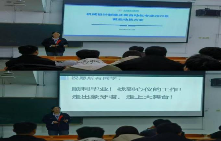 从毕业去向看,2024届机械设计制造及其自动化专业122人,落实率91.80%;2025届机电学院机械专业116人落实率89.66%,出现下降趋势。岗位需求方面,相关数据显示2024年校招职位中,机械/制造领域占7.40%,企业最看重应届生的实习经历/社会实践、专业与岗位匹配度及可塑性。同时向学生提出三点建议:树立正确就业观,合理设定期望值;关注学校官方就业信息,全面了解招聘动态;重视校园招聘,摒弃“慢就业”思维。