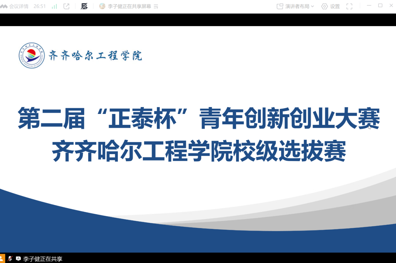 12月24日,齐齐哈尔工程学院第二届 “正泰杯” 创新创业大赛在线上落幕。这场面向全校的比赛以 “科技贴近实践,创新服务专业” 为主题,吸引数十名学生团队参赛,此次负责老师为机电学院李子健老师负责。