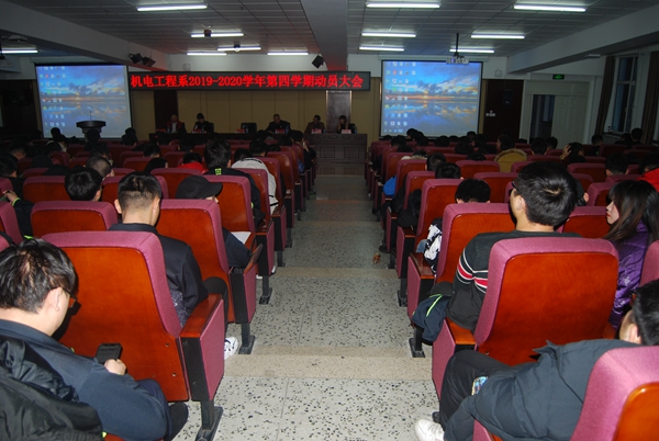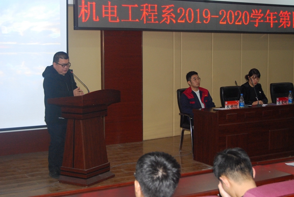 12月25日,机电系在图书馆501召开第四学期动员大会,学院副院长张振笋,机电系主任高爱利、副主任黄颖、孙晓芳、专业长和全体指导教师及机电系学生300余人参加大会。
