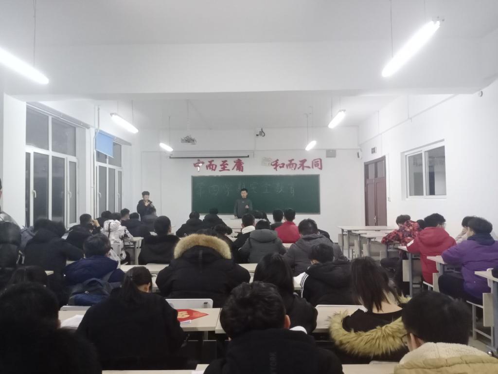 寒假即将来临,第四学期就要开始,为提高机电系学生在完成第四学期学习过程中的安全意识,辅导员隽永刚老师于12月24日在图书馆414对机械本192、191班全体学生进行了第四学期安全教育培训。