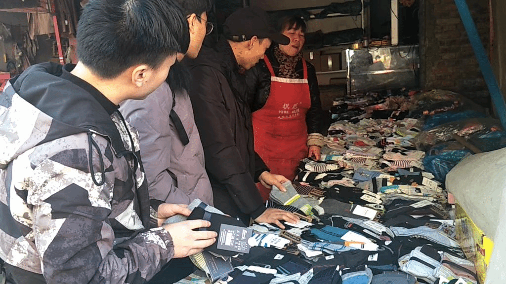在组长的组织下我们进行了简单的商讨,最终决定对昆明官渡区周边几个市场进行市场调研,通过三小时的走访,我们对昆明周边袜子售卖情况得到了大致了解。最后我们决定在昆明双凤综合批发城进货,我们观察了多个服装批发店,根据货源质量和价格的对比后,最终以400元的价格进到了200双袜子。
