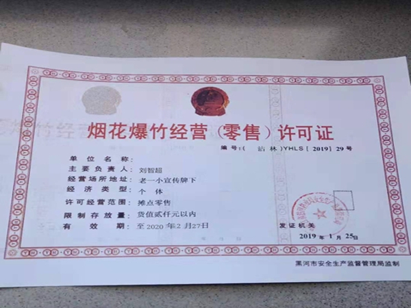 我们从厂家进口了一批烟花爆竹以后,本周又取得了销售许可证,为第二周的工作和下一阶