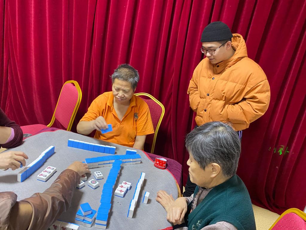 敬老院的老人听说我们又再一次来到这里看望他们,十分高兴。正赶上新年来临之际,准备给给老人举办联欢会。给老人唱唱歌,讲讲笑话,讲段子。入住的老人们和护理员各个争先表演节目,有歌舞、秧歌、歌曲、快板、朗诵诗,还有表演三句半的,整场节目丰富多彩,这些节目都是自编自导自。表演受到老人们极大的喜爱,观众们大声叫好,热情洋溢的氛围让这寒冷的冬天变得暖意绵绵,最后在大家合唱歌曲《好运来》中,联欢会宣告结束。
