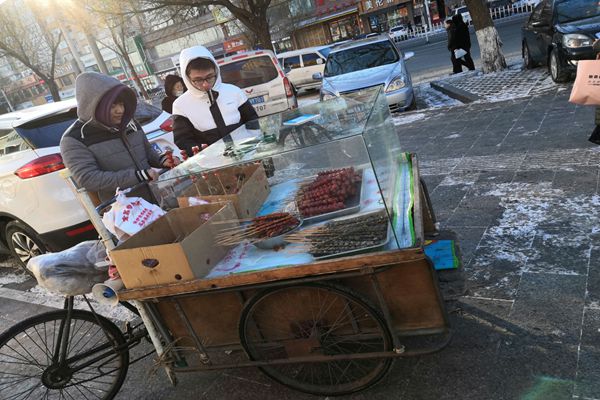 这一周接近年关的天气比预想的有点冷,我们三个人还是老套路在这里叫卖。接近年关生意还是很好做的,人们也比较喜欢糖葫芦,所以一周的生意换算不错。具体一些的话其实也就是当街有个喇叭到处吆喝,因为我们没有更好的包装所以买的相对便宜许多,还是最初的价格5元3串,所以效果还是不错的。唯一缺陷的是真的冷这两周下来让我们苦不堪言,天气比预想的冷的多,保暖效果做的不好,尝试到赚钱的不易。