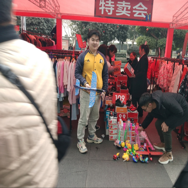 我们CY-052的创业组选择创业项目是卖新年玩具。1月16日,我们小组进行第二次创业体验活动。此次我们选择在成都市金牛区,以与买童装的店合作的方式进行。