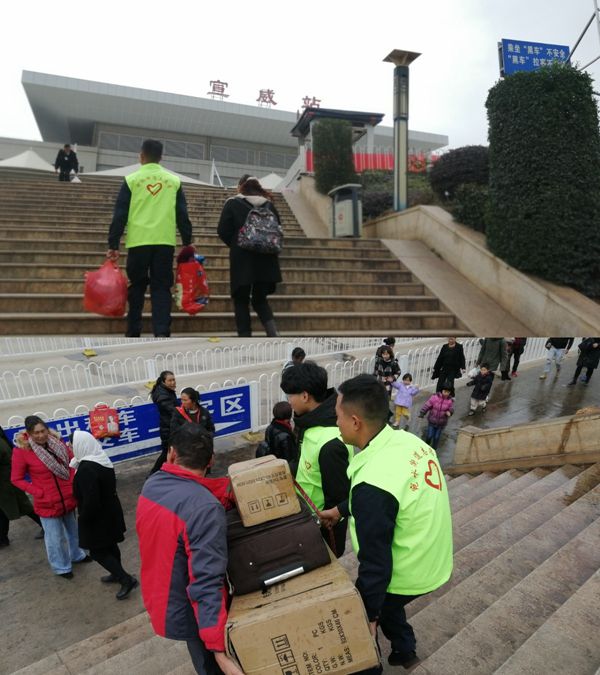此次的志愿活动任务主要是帮助车站的来往人员搬运行李,正值年关,许多在外工作的人都选择在这时回家,手上拎着大大小小的包裹,大多应该是买给家中父母孩子的礼物,拿着大包小包自然不方便上下楼梯,甚至可以说举步维艰。看到此情此景我们毫不犹豫的上前去帮他们拎起重物,帮他们送达目的地,他们得到我们帮助都很开心,并对我们表示感谢。