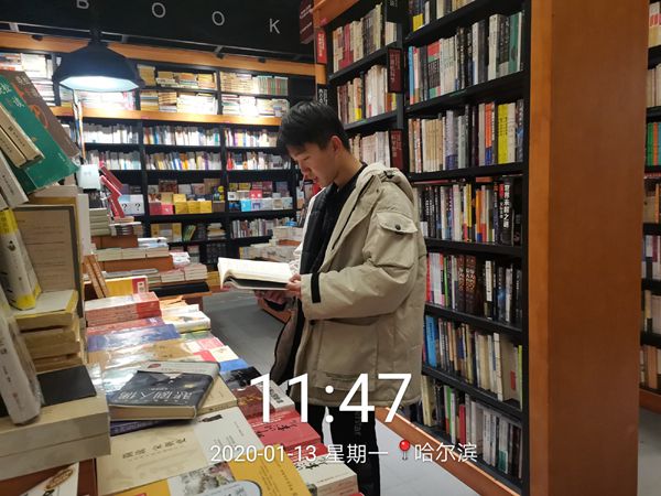 1月13日上午,我们小组贾涵予,修涵,付佳欣,张青宇四名成员,来到道外区百盛购物中心的西西弗书店展开读书交流活动。欧式风格的橱窗,没有硬朗的直线设计,而是丰富的圆弧型,简明大气明亮的LOGO,上面写着“西西弗书店”的中英文字样。深绿、深红、黑色三种色调是书店的主色调,让人耳目一新。摒弃传统的文化布局概念,能将书店做得富有艺术浪漫气息且文艺范十足,不得不让人喜欢。