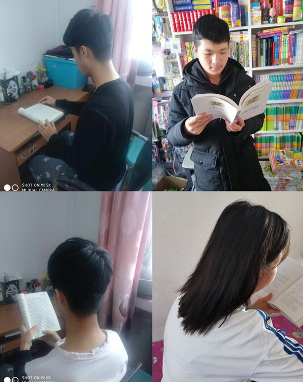 书是人类的精神食粮,我们都应该好好读书,吸取能量为以后的茁壮成长蓄力。书是历史的见证者,书是文化的承载着,书是文明延续的继承者。作为现代社会主义的在校大学生。我们都应该好好学习,好好读书,为以后的社会添砖加瓦做出自己的贡献。从小读书就被称赞成一种美好的行为,有周恩来总理为中华民族之崛起而读书,有头悬梁锥刺骨的典故,所以在这个寒假中我们每个人都没有闲着,在书本中吸取能量,获得了许多的感悟。由李月,赵雨,廉博,徐昊,在群里交流读书感想----我们明白了生活中不要抱怨,抱怨是一种消极的能量,我们应该改变自己的想法与行为,去改变事情的结果。读书也是与贤者对话,教会了我们许多道理。
