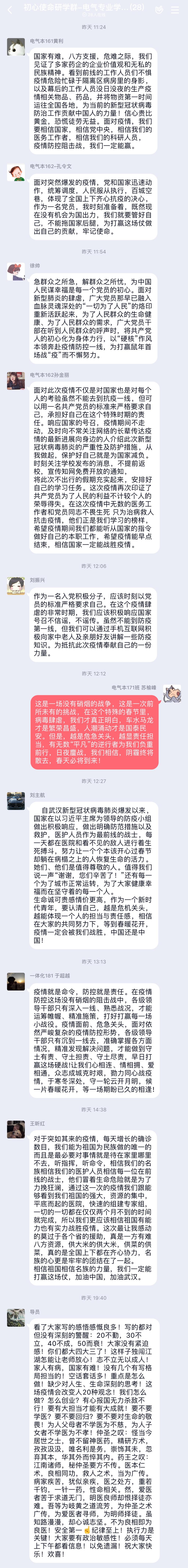 2月16日,班长李佳恒提出疫情过后我们最想做的事儿,大家讨论的热火朝天,有人说疫情结束之后最想做的事情就是涮个火锅,再也不怕长胖了,在家的这些天实在是憋坏了。其实很多人跟她一样,几天不吃美食就受不了。好几个同学说已经十几天都没有出门啦,每天闷在家里块憋死了,等疫情结束以后,最想做的事情就是出门,不管干什么,先出门一次就行。