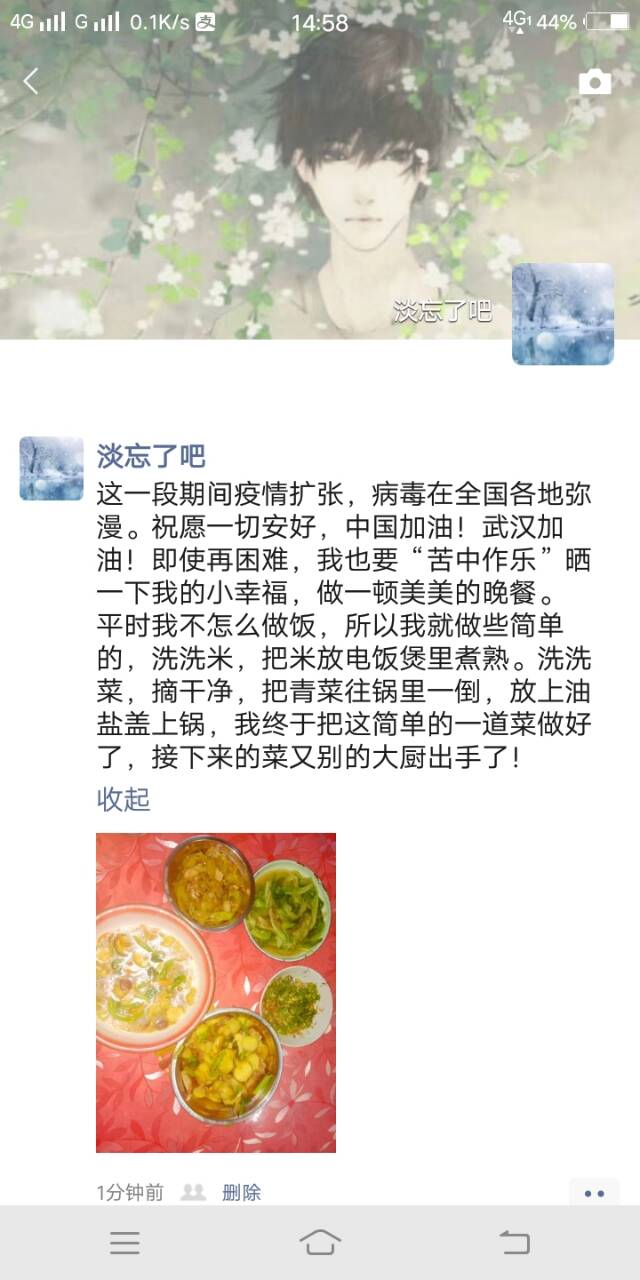 这一段期间疫情扩张,病毒在全国各地弥漫。祝愿一切安好,中国加油!武汉加油!即使再困难,我也要“苦中作乐”晒一下我的小幸福,做一顿美美的晚餐。平时我不怎么做饭,所以我就做些简单的,洗洗米,把米放电饭煲里煮熟。洗洗菜,摘干净,把青菜往锅里一倒,放上油盐盖上锅,我终于把这简单的一道菜做好了,接下来的菜就别的大厨出手了!嘴上说的总是简单的,其实用心去做的话还是得花些功夫的。