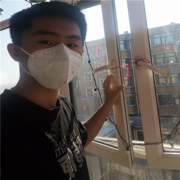 孙钰淞身为小组组长,尤其在疫情情况严峻的时候,起到了模范带头作用。时时刻刻注意着自己的安全以及家人的安全。通过网络随时和小组组员联络,并且叮嘱组员们多注意自身防护,每天为家里通风保持空气流通,还戴好口罩去采购了消毒用品。孙钰淞买了酒精,装在喷壶里进行室内消毒,在家里用消毒水去擦拭桌椅及物品,拖地扫地。