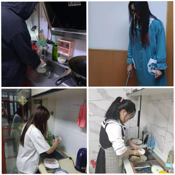 作为成年的大学生,一般家中的粗重家务都可以完成的了。而且,一个大学生的整体素质也可以从是否有在家里劳动体现出来。现在有一部分人连最基本的家务都不会做,对于我们,我们要改变这种一成不变的生活方式,让生活充实起来。每天早上,吃完饭后都会主动去洗洗碗、擦擦桌子;每天吃完饭后我们家都会把所有屋的地都擦一遍,虽然每天及时擦地,但还是会出现很多的灰尘,这些灰尘都会粘到地板上,是很难打扫的,最后得不偿失。所以,为了之后的结果更好,也为了后面可以更轻松,只能全力以赴。我们不仅做了这些,也洗了一些脏衣服等等。这就是我们组员每个人在家做家务的全过程。