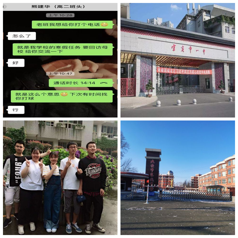 时间过得是飞快的,三位同学离开高中生活已有三年有余,他们采取不同的方式进行回访,方式虽然不同,但情谊相同。三位同学首先为老师们送去了春节祝福,之后向老师们讲述了自己在大学生活的点点滴滴,向老师们介绍齐齐哈尔工程学院的优良传统以及校园文化,同时也希望学弟学妹们可以更好的了解这所学校。老师们也关心的询问了三位同学在大学生活里是否遇到了困难和挫折,并表示愿意帮助解决一切问题。最后,活动在三位同学祝老师们身体健康及依依不舍的告别中结束。