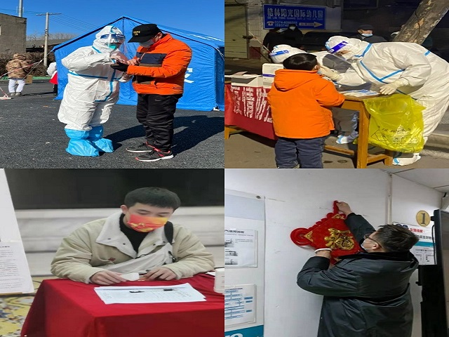 在疫情防控期间,李传雷同学选择成为社区核酸检测的志愿者;姜宇同学选择为社区工作助力,对楼道里进行挂春福;王佳明同学选择为社区进行垃圾分类,防止老人家摔倒;马政鑫选择在商场里当社区检测体温的志愿者。
