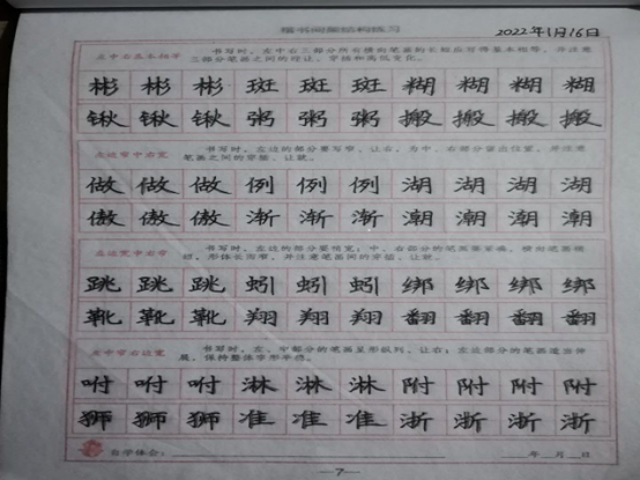 为了提高大学生个人素质磨炼意志,从2022年1月10日起至2022年2月27日在家每天完成一页字帖的书写。在规定时间内我们小组所有成员(李晓慧、杨相、王礼鹏)在组长郭云云的带领下已经顺利完成相应的字帖临摹。