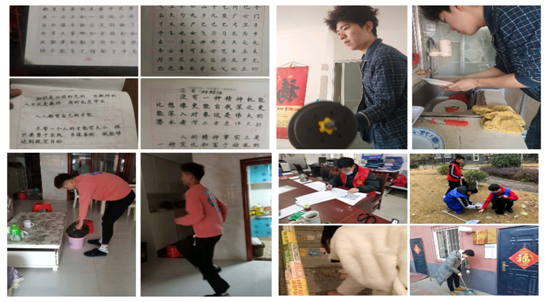 寒假后,积极响应齐齐哈尔工程工程学院的号召,我们的组长袁东洋第一时间到街(村)道团委报道,加入了抗疫志愿者队伍,每天在防控服务点做好进出人员的信息登记、测量体温,排查其家中有无外来或返乡人员,是袁东洋同学每天在防控服务点的基本工作任务。在过去的两周中,孙永剑同学带领我们学习并积极的临摹字帖,并且每天进行钉钉打卡互相监督,同时我们也会相互总结,相互反省,指出彼此之间的不足并且加以改正,相信第四学期结束之后我们的书法可以更上一层楼。周宇晨同学也督促我们在家也要锻炼身体,提高我们自身体抗力。感恩实践孝顺父母是我们中华传统美德,在梅嘉庆同学带领下,我们在家做一些力所能及的事情以此来减轻父母的压力,给家人做我们新学会美食。