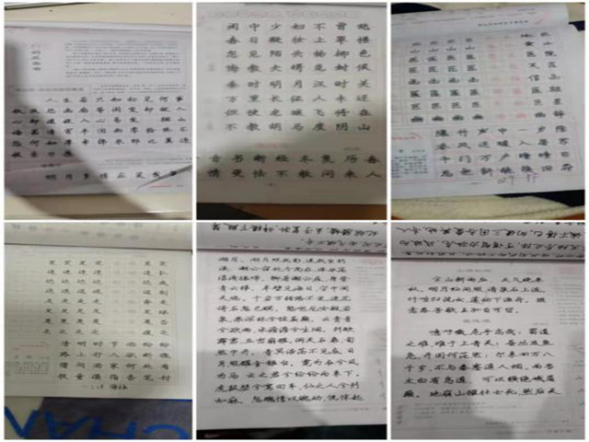 此次活动,是为了弘扬中华民族传统文化,提高我们的练字习惯和道德素养,练习书法的同时可以改变我们的心境。字体的不雅观一直是我们学生的一个难题,无论是在日常生活中还是以后的工作,看人都是先看字,工整的字体会带给别人一个良好的第一映像。经过此次活动,我们的字体可能并不会有太大的改变,但是带给了我们不一样的练字体验。