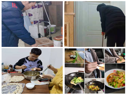 本次活动旨在帮助父母分担压力,不仅让组员们增强了各方面的能力,还拉近了组员与父母们之间的距离。小组成员晏梓卿和孙百圣在期间为父母做菜,在帮助父母的同时也让自己得到体验和提升,小组成员陈思行和潘辅帮助父母做了一些力所能及的家务,比如帮助父母打扫卫生,搬运重物,同时也把自己的房间打扫干净,做一些自己力所能及的事。本次的活动让小组成员们体会到了父母的辛苦,也感受到了劳动的不易。